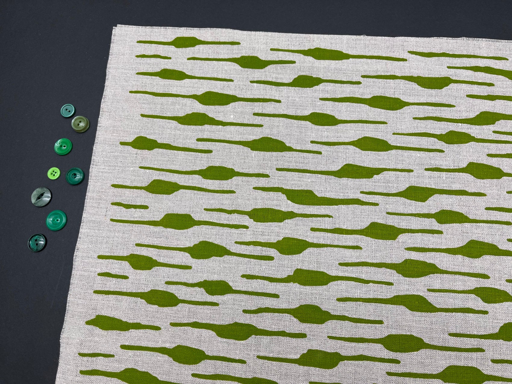 Organic birch inspired fabric printed in apple green. This fabric panel is perfect for handmade projects, such as cushions and bags, or combine with other fabrics and create an original quilt or cushion cover. The linen based fabrics are lovely to hand stitch into if you enjoy embroidery or a little hand quilting.