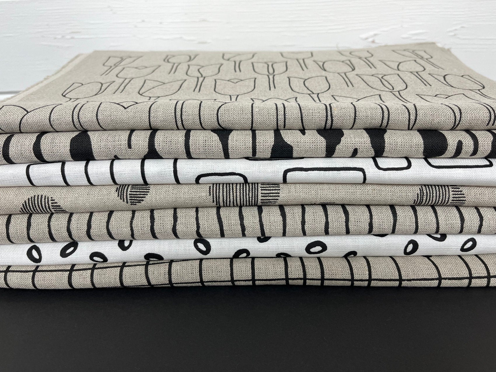 All three fabrics are shown in the last image, both of the linen based fabrics are perfect for hand stitching into, for embroidery, hand stitched projects and hand quilting.