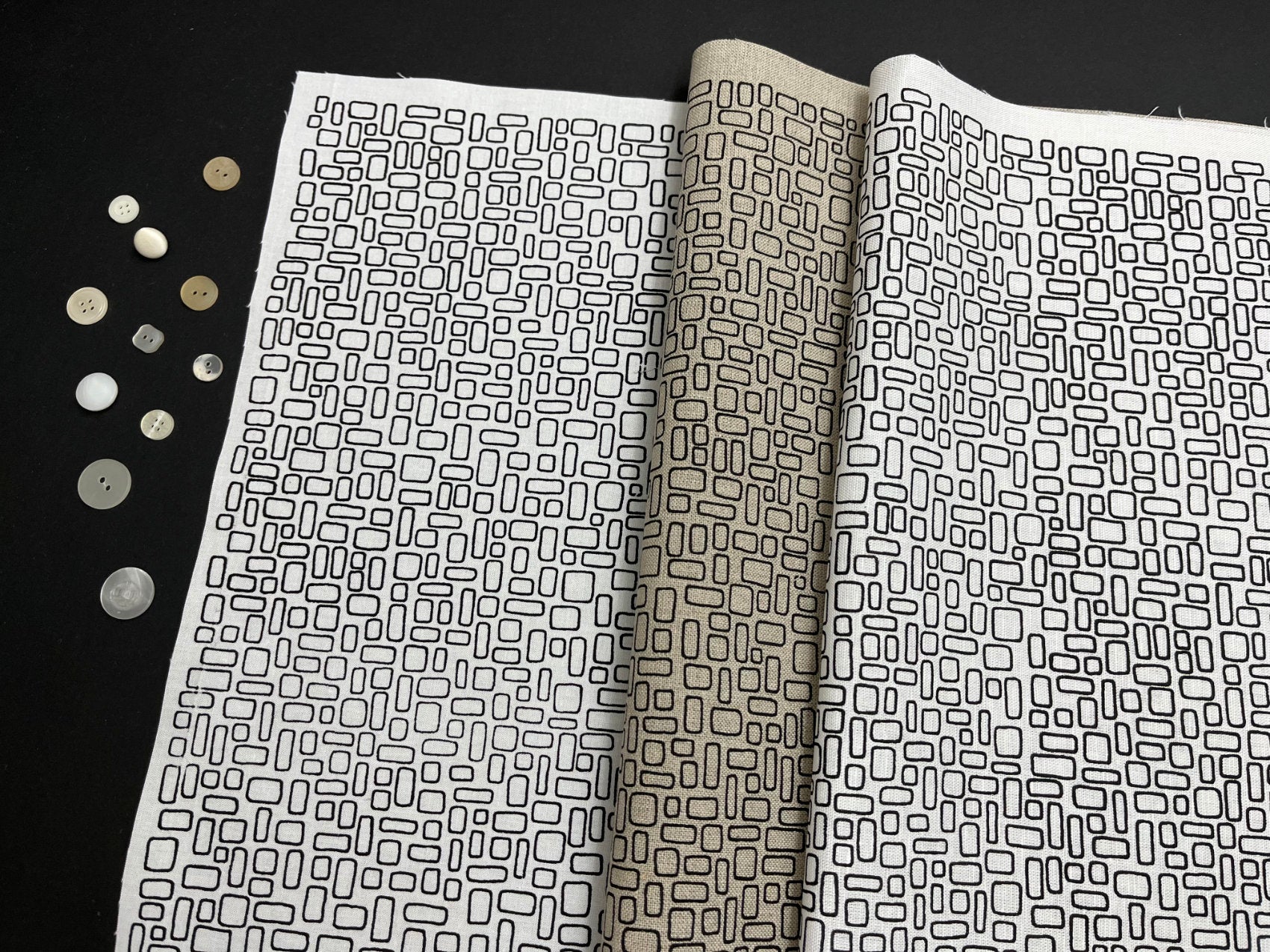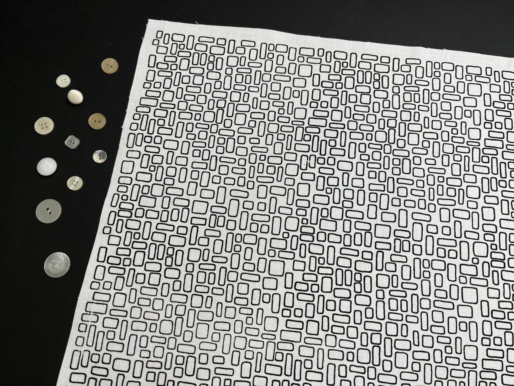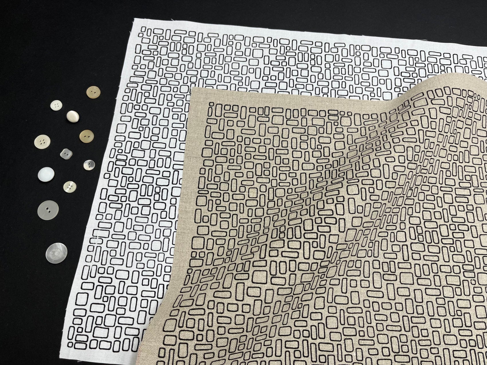 'Mesh' design hand screen printed onto fabric ideal for quilting and sewing projects.