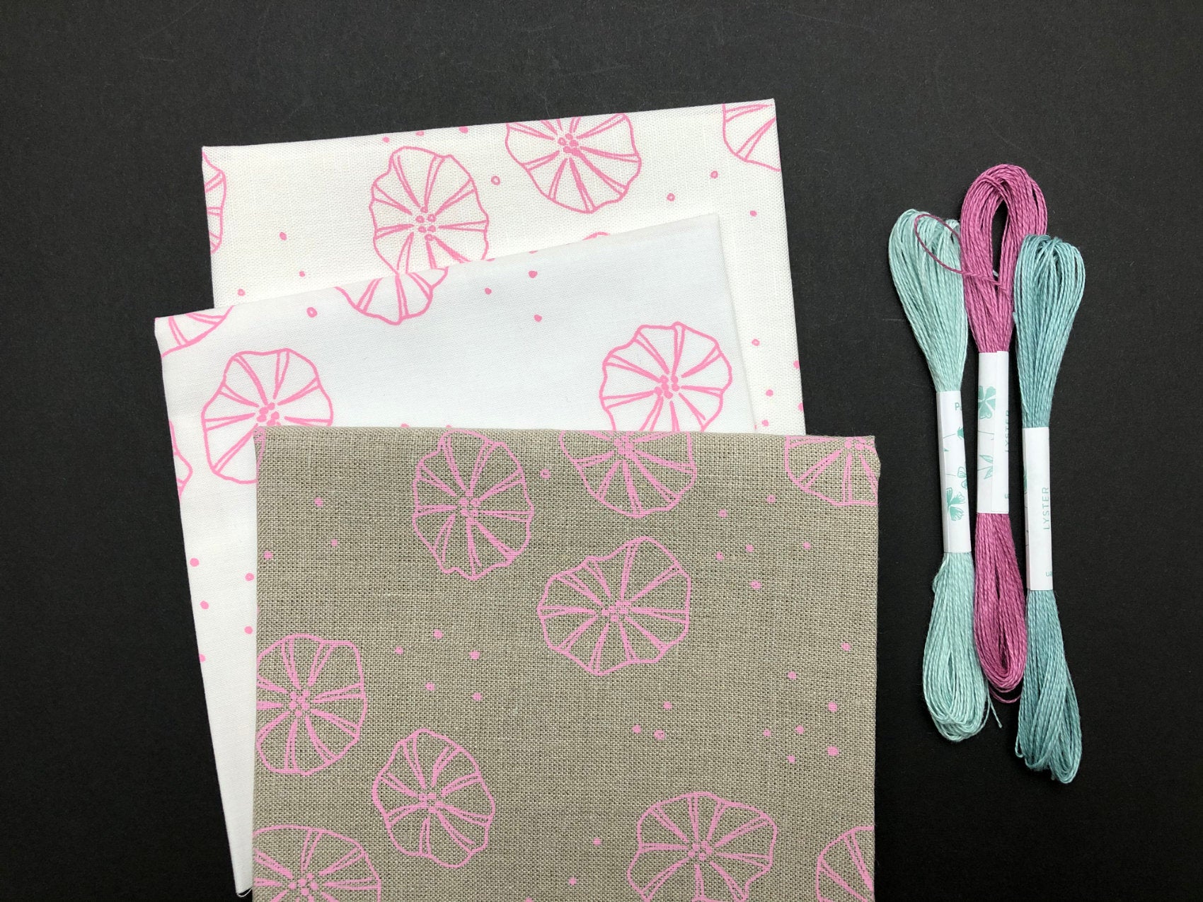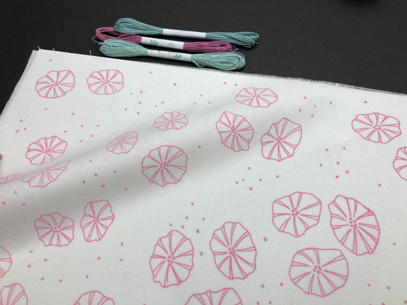 Some of the images show a panel that I added some embroidery to, I then used half the panel to make up a drawstring bag. I used a simple seed stitch in a fine embroidery thread, the flowers bloom beautifully with a little colour. Choose your favourite colours and you have an easy project to work on in the evenings. There's a free tutorial to make the drawstring bag here.