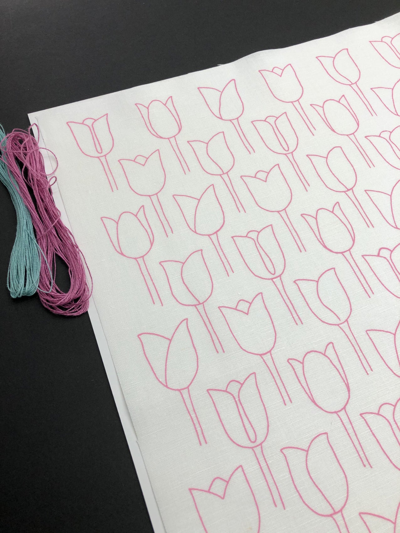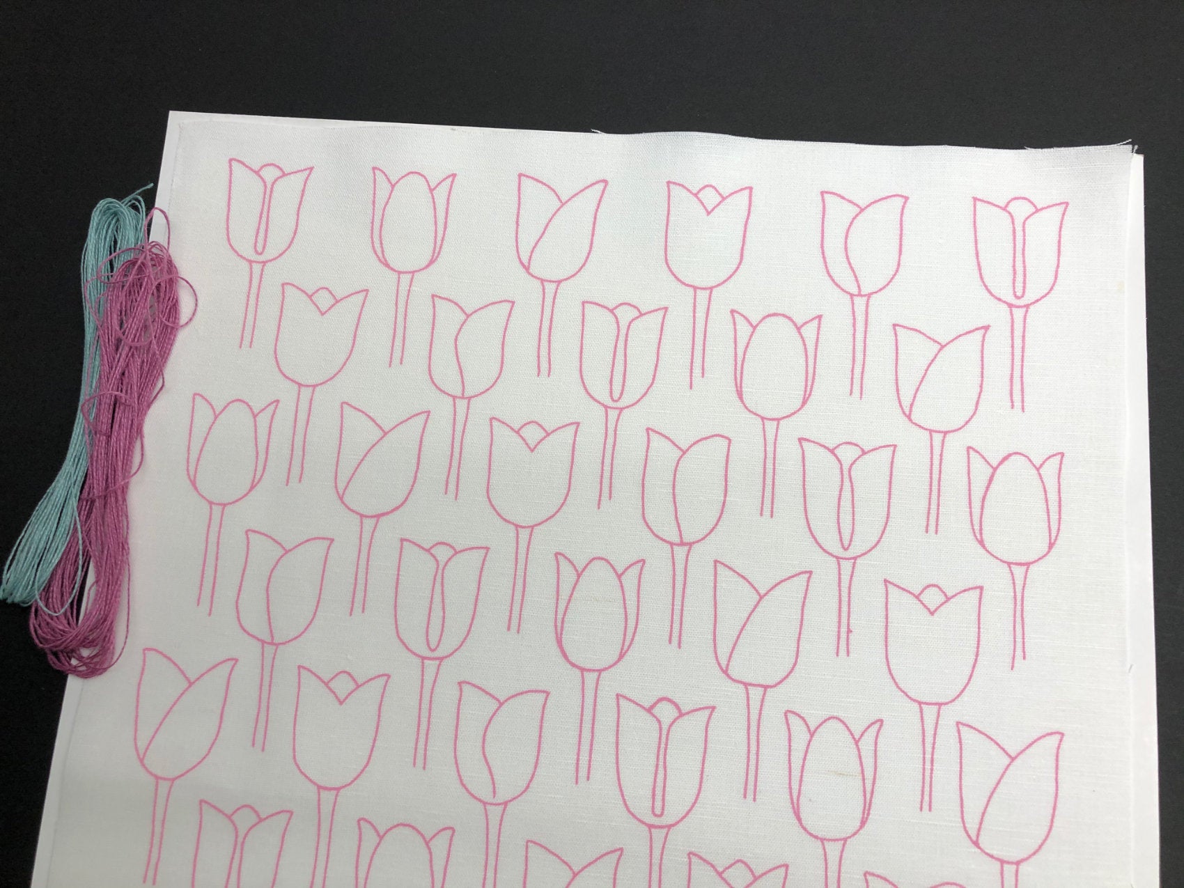 Tulips, printed in blossom a delicate pink.