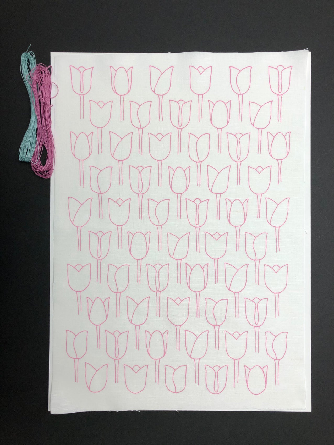 An elegant, stylised tulip design, inspired by the Art Deco movement. Printed in our studio onto natural tactile fabrics. These panels are ideal for embellishing with stitches, using in patchwork and other craft projects.