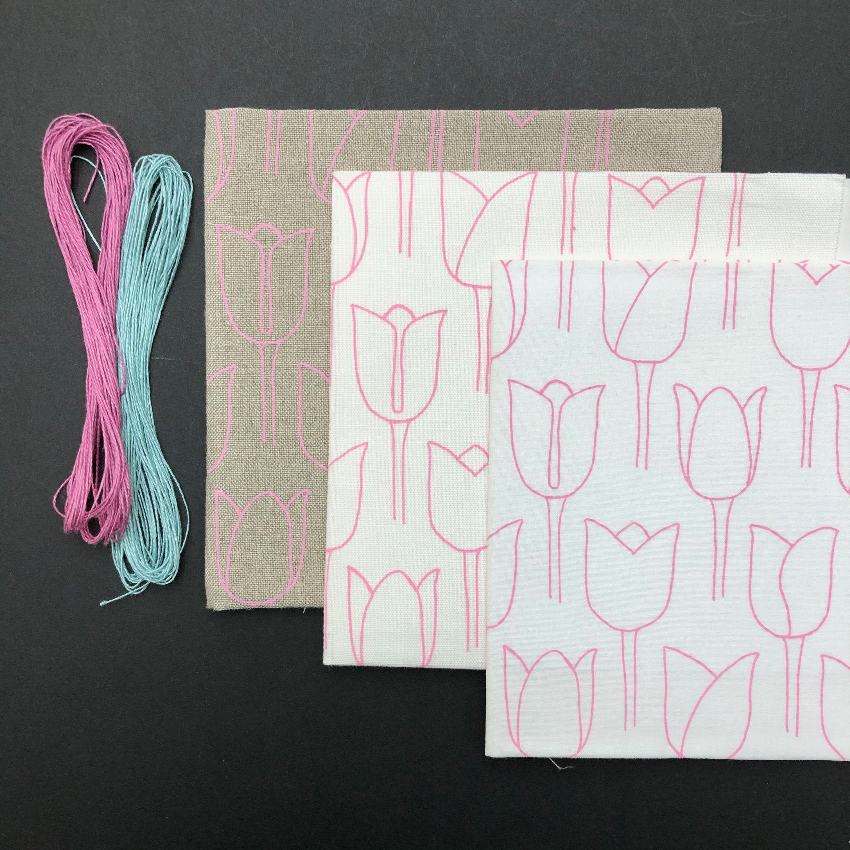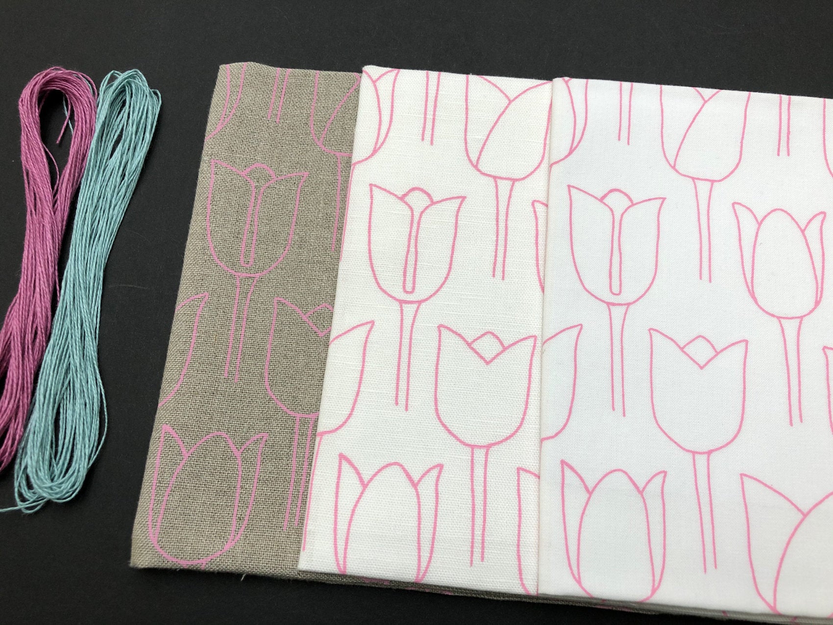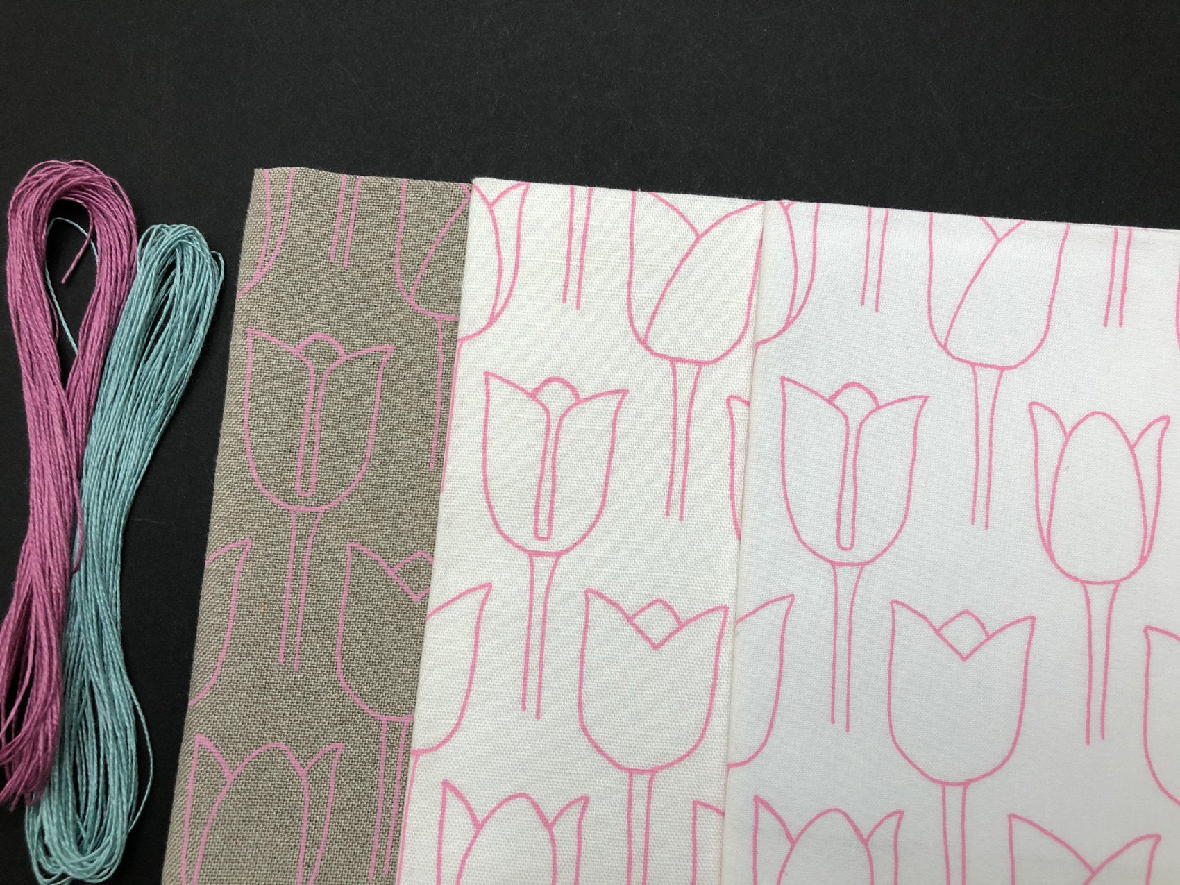 The linen and linen / cotton blend fabrics are best for embroidering into as they have a looser weave and wonderful texture.