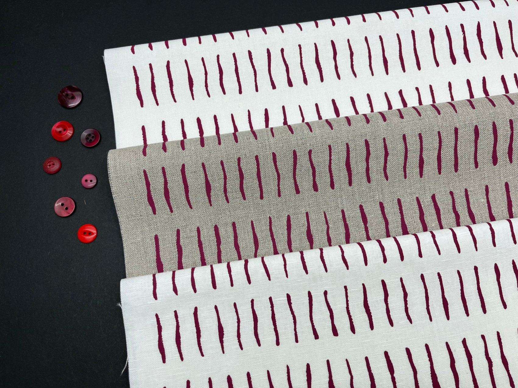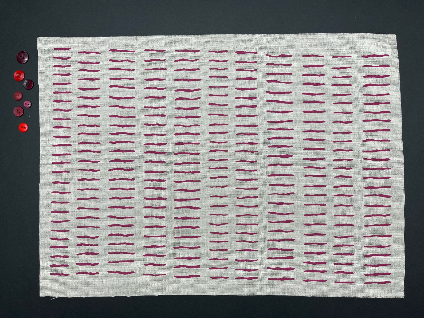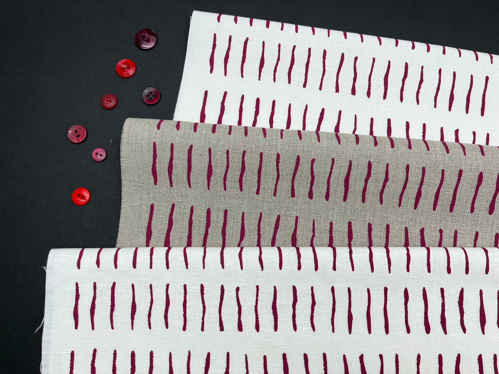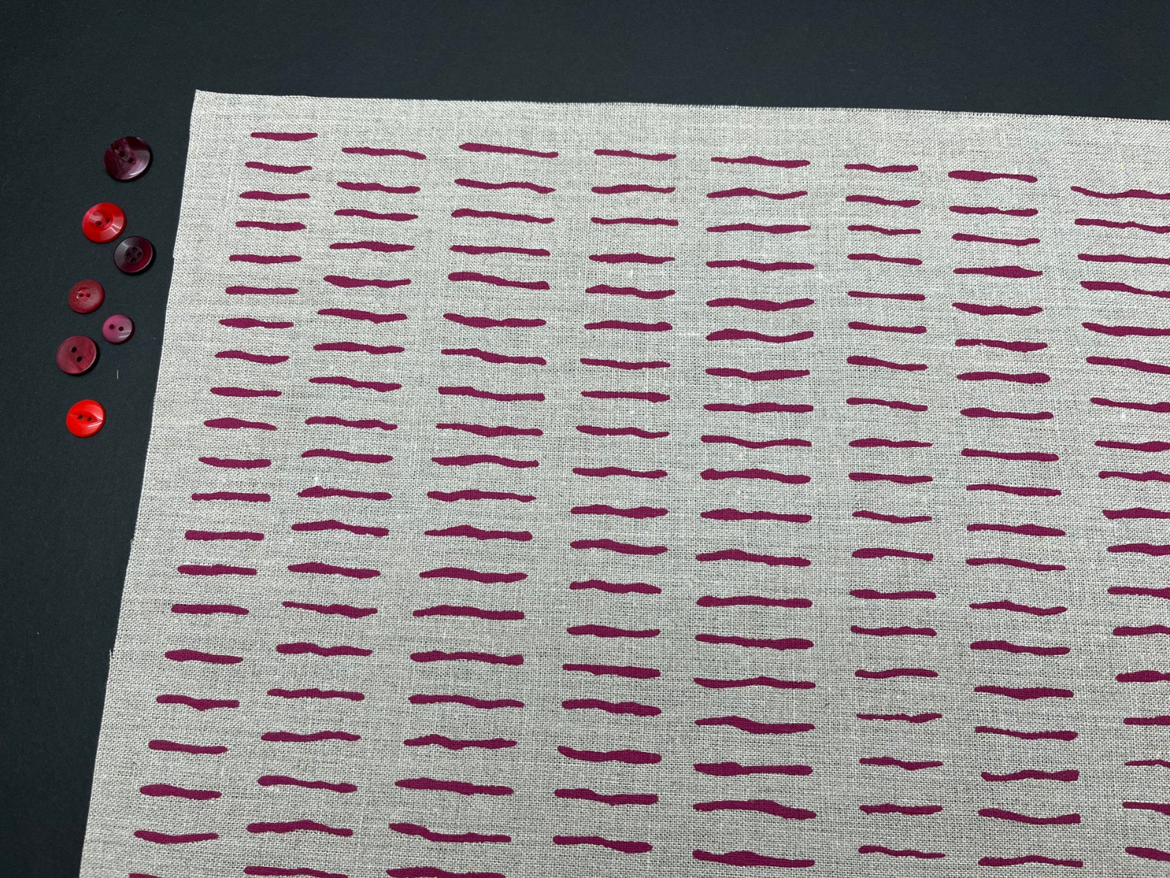 Hand screen printed cotton and linen fabric for embroidery, quilting and craft projects. These original fabrics have simple designs with a vintage feel to them, pick your favourite colour and print and plan your next project.
