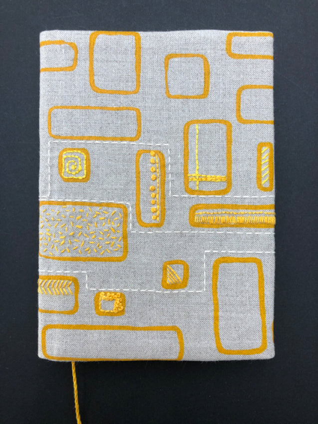 Retro inspired, the design 'windows' is one of my most popular amongst embroiderers, scroll through the images to see a sample I stitched into and went on to make it into a 'modern sampler' and a book cover embroidered by my Mum.