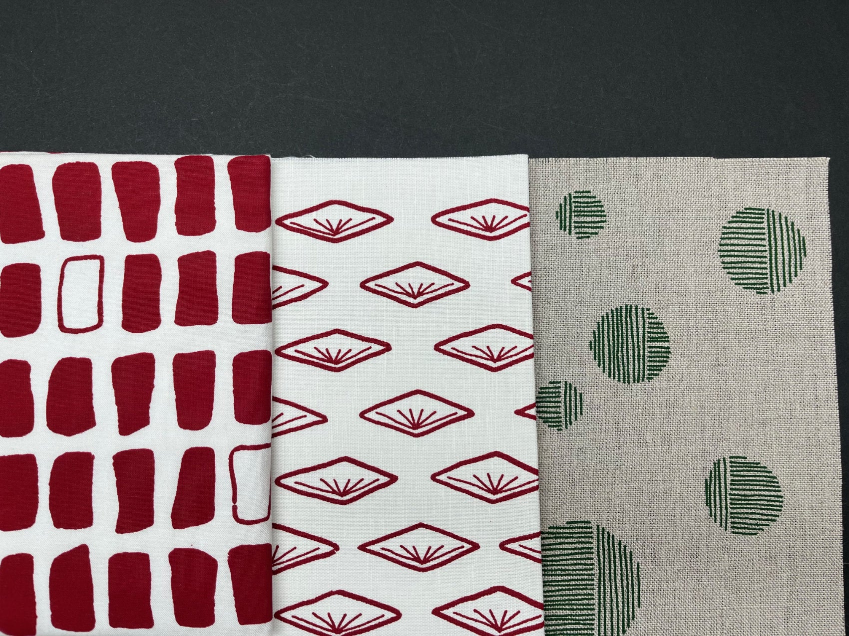 Red Diamonds, printed on white 54% linen / 46% cotton blend, printed area measures approx 50 x 34cm (19.5 x 13.25")