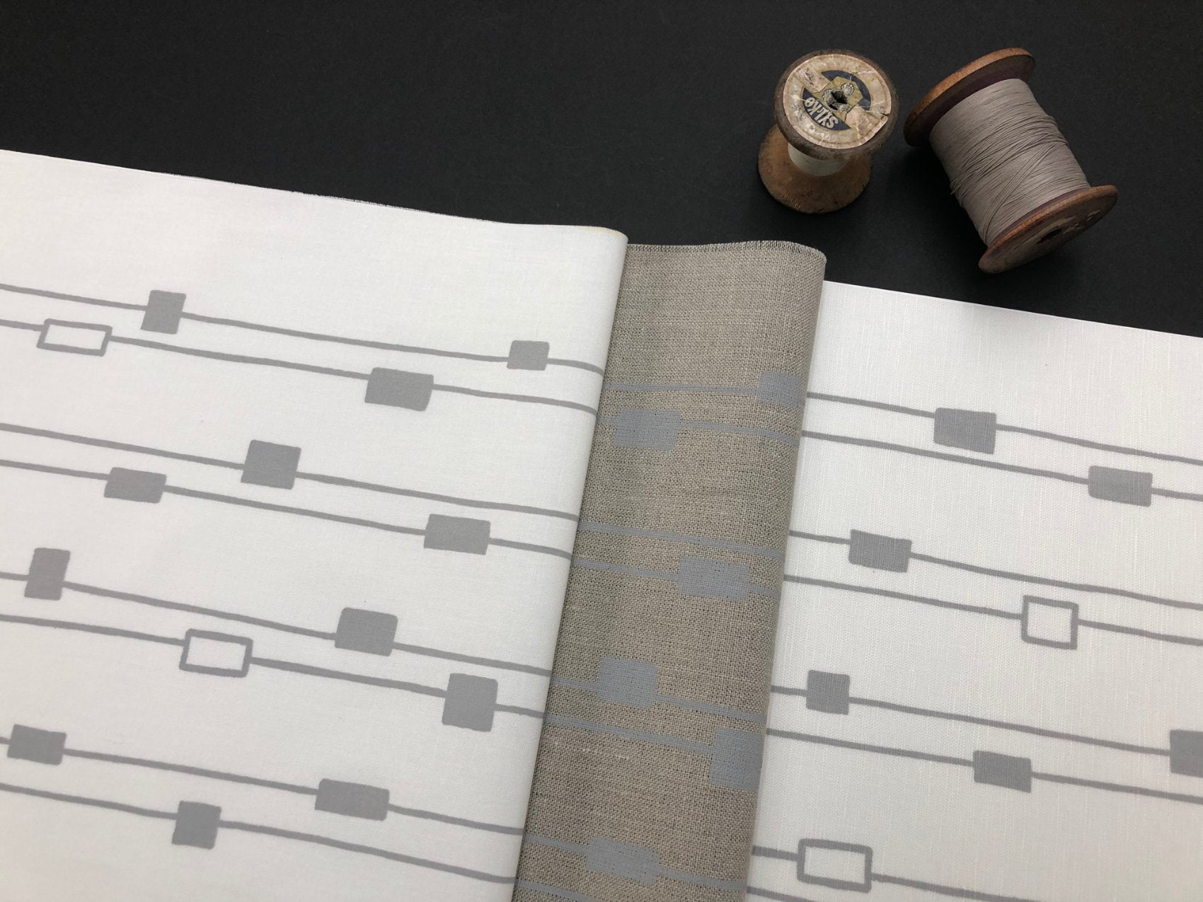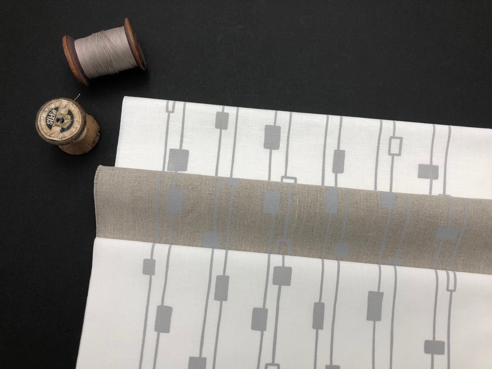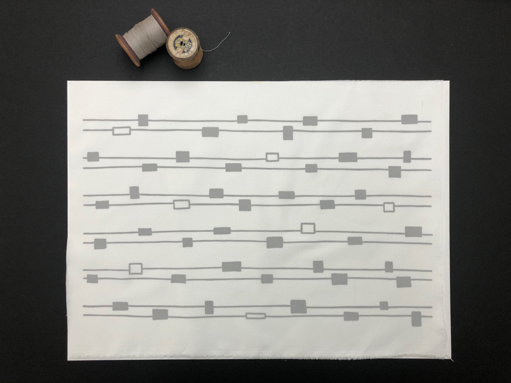 Graphic screen printed fabric ideal for embroidery, quilting and crafting, hand printed onto linen and cotton fabric to suit your projects.