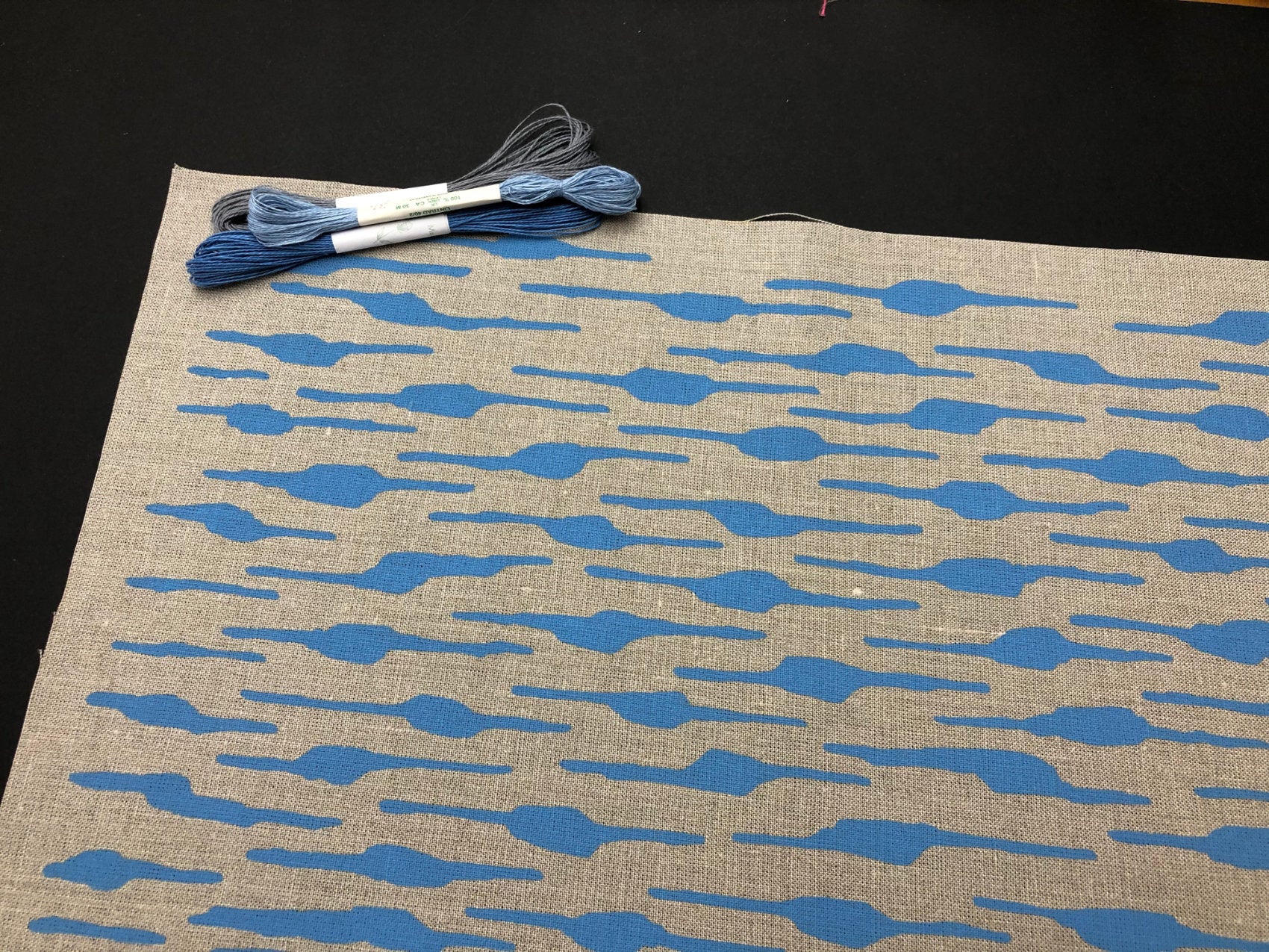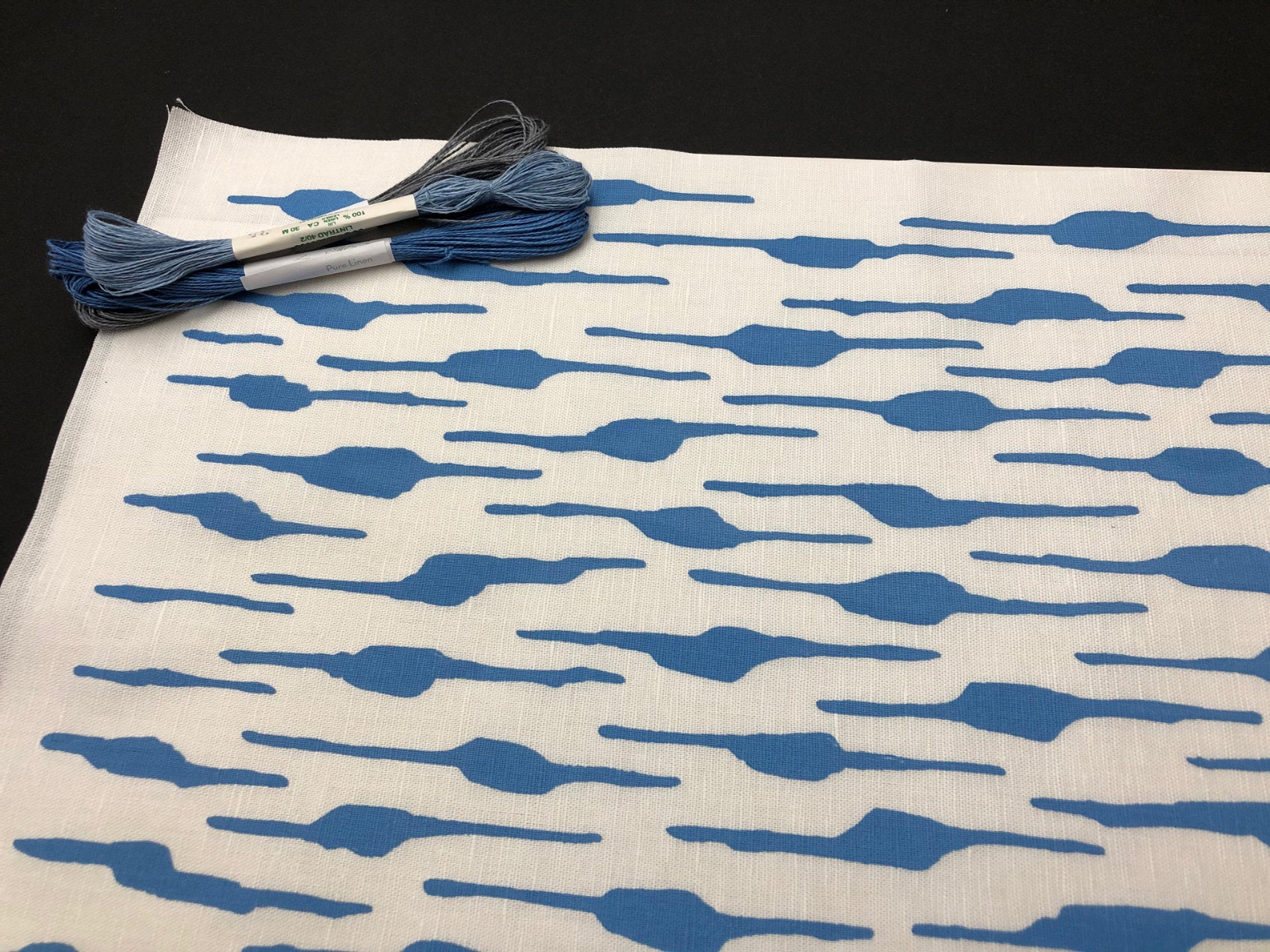 Graphic screen printed fabric ideal for embroidery, quilting and crafting, hand printed onto linen and cotton fabric to suit your projects.