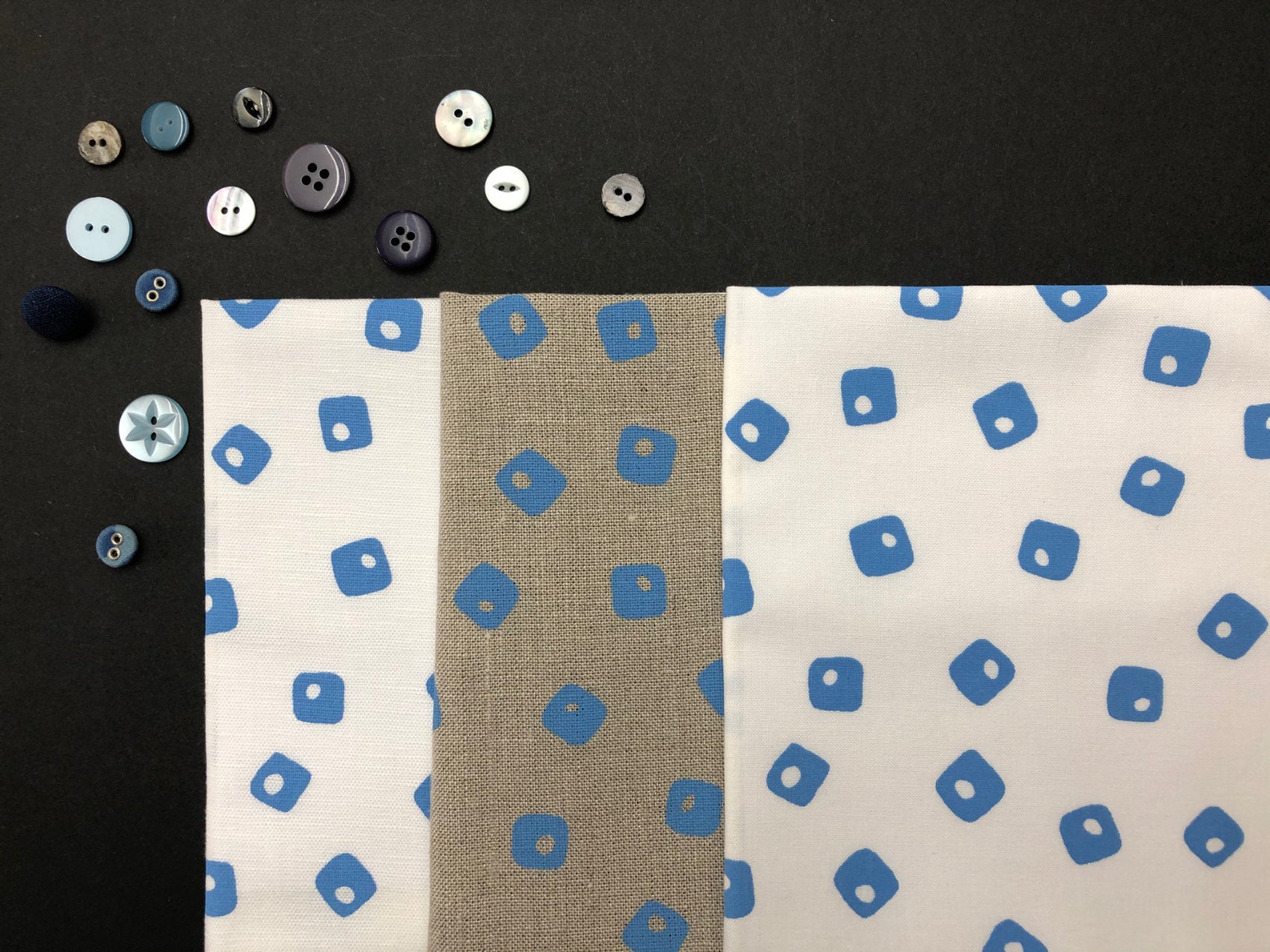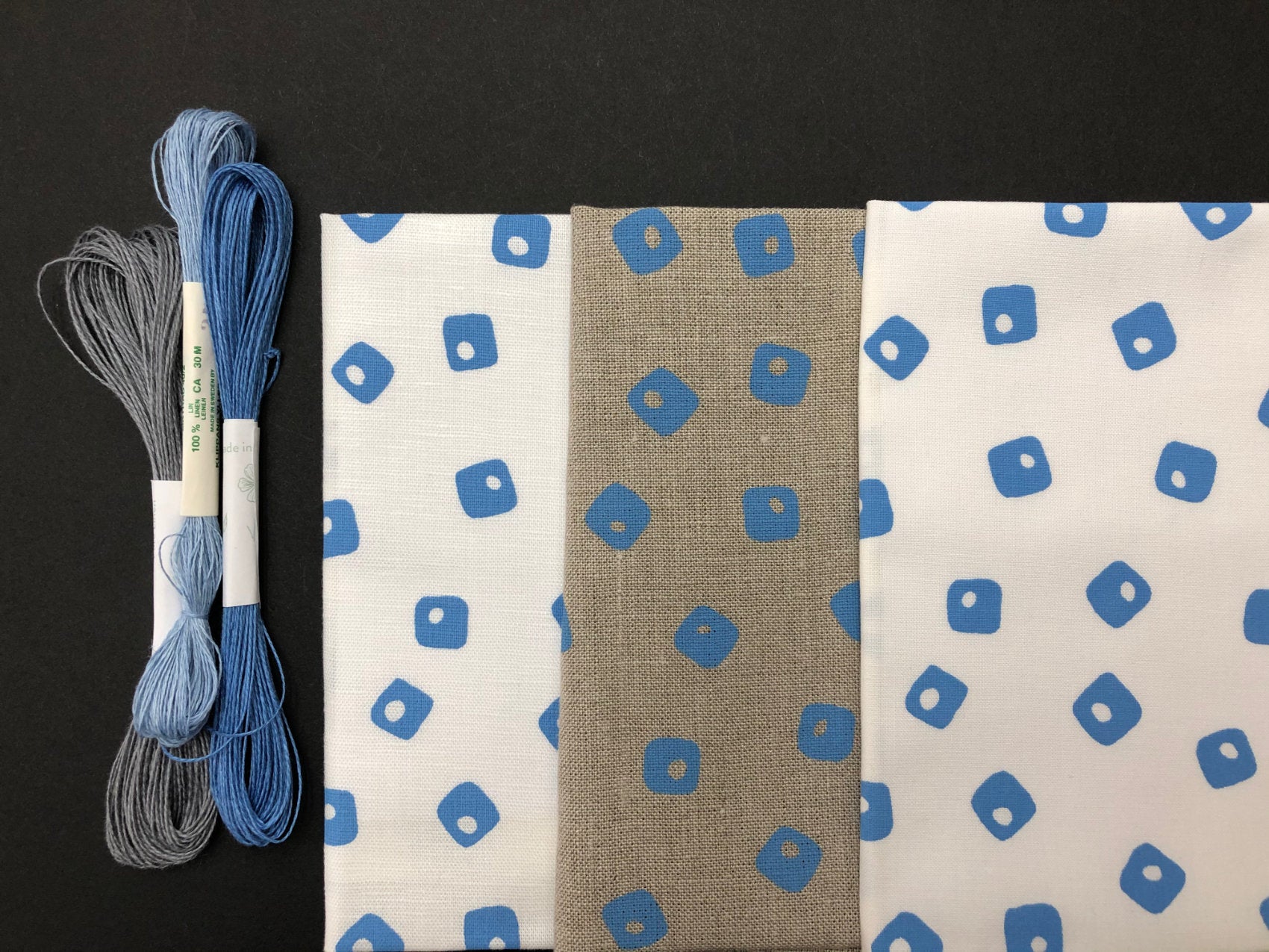 All three fabrics are shown in the last image, both of the linen based fabrics are perfect for hand stitching into, for embroidery, hand stitched projects and hand quilting.