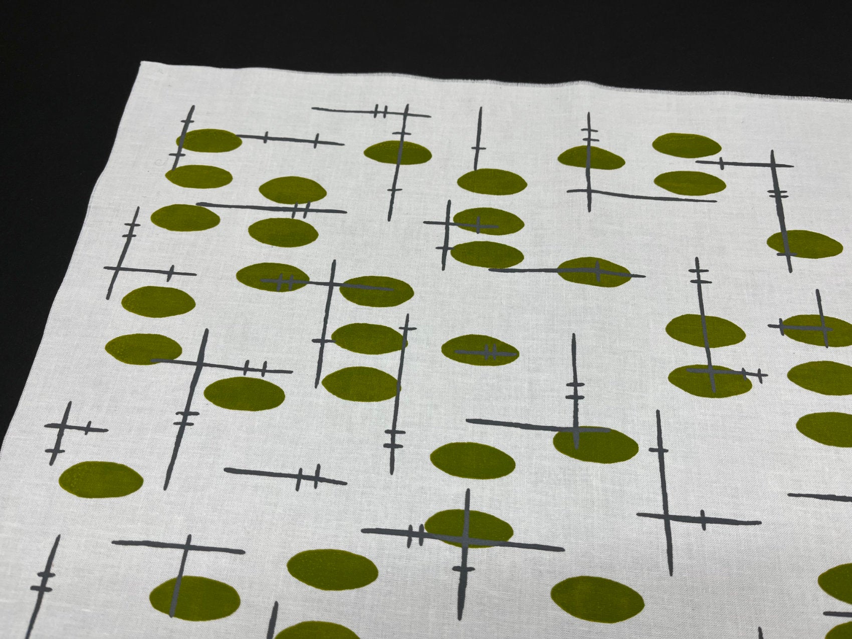 1951 is printed in stone grey and over printed with the design Pebble in apple green to create and original fabric for you to incorporate into your projects. This is a Limited Edition Double Print, so get one while they are available.