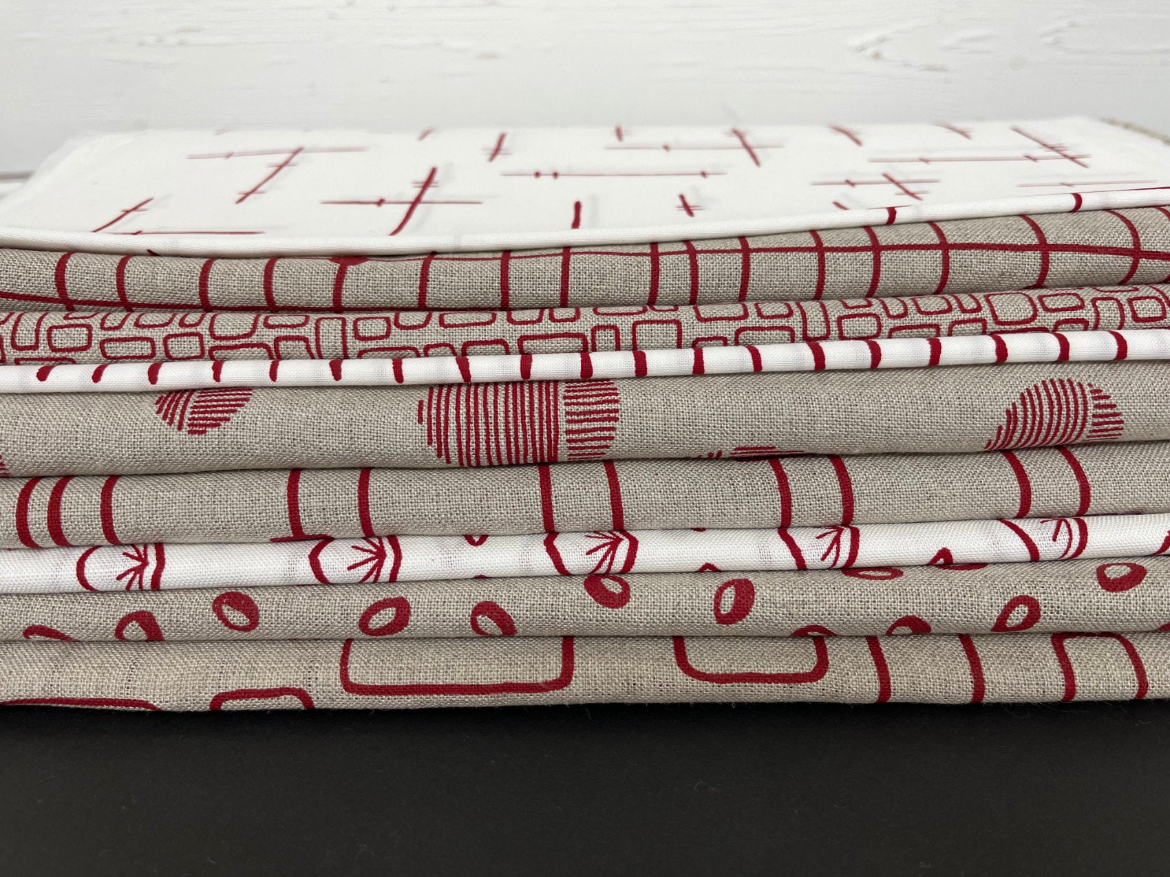 This midcentury inspired design is a great textural addition to your projects. Printed by hand in my studio, onto natural tactile fabrics. These panels are ideal for embellishing with stitches, using in patchwork and other craft projects.