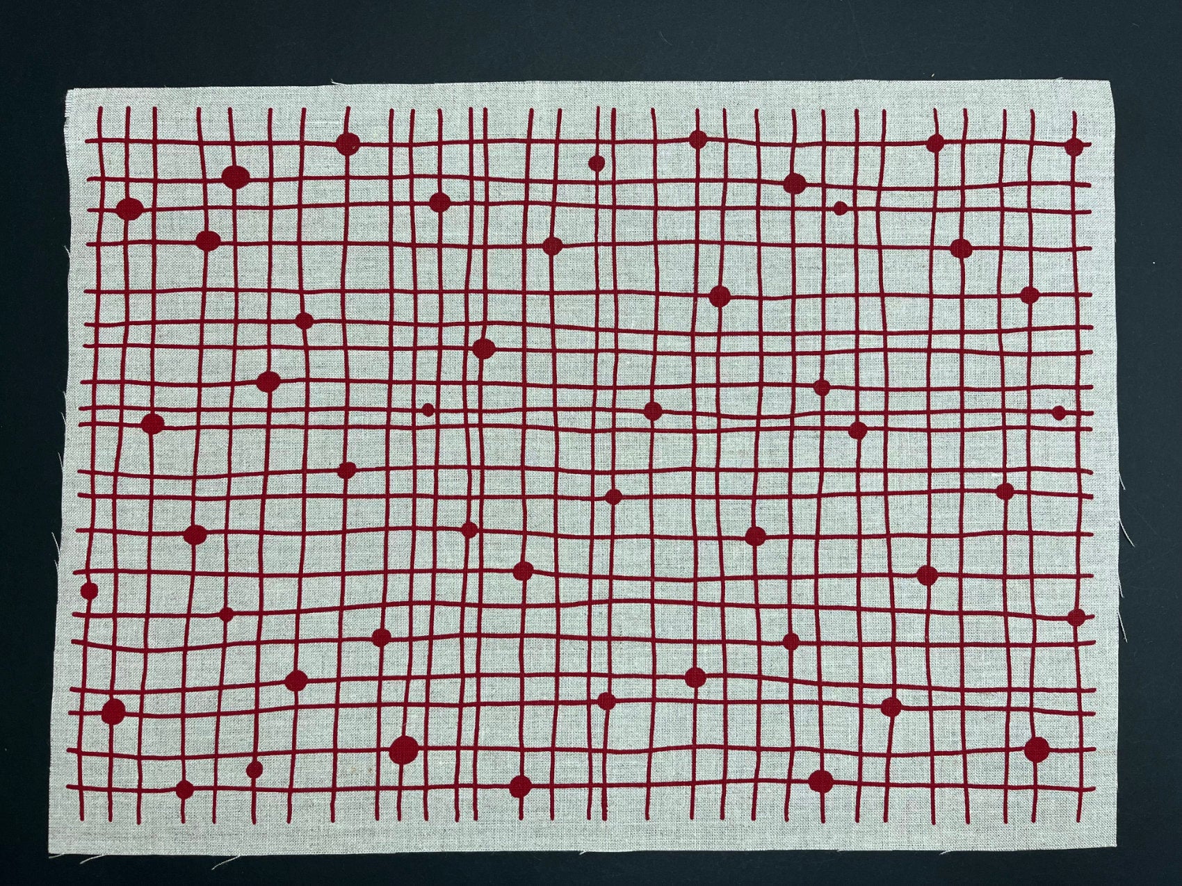 Graphic screen printed fabric ideal for embroidery, quilting and crafting, hand printed onto linen and cotton fabric to suit your projects.