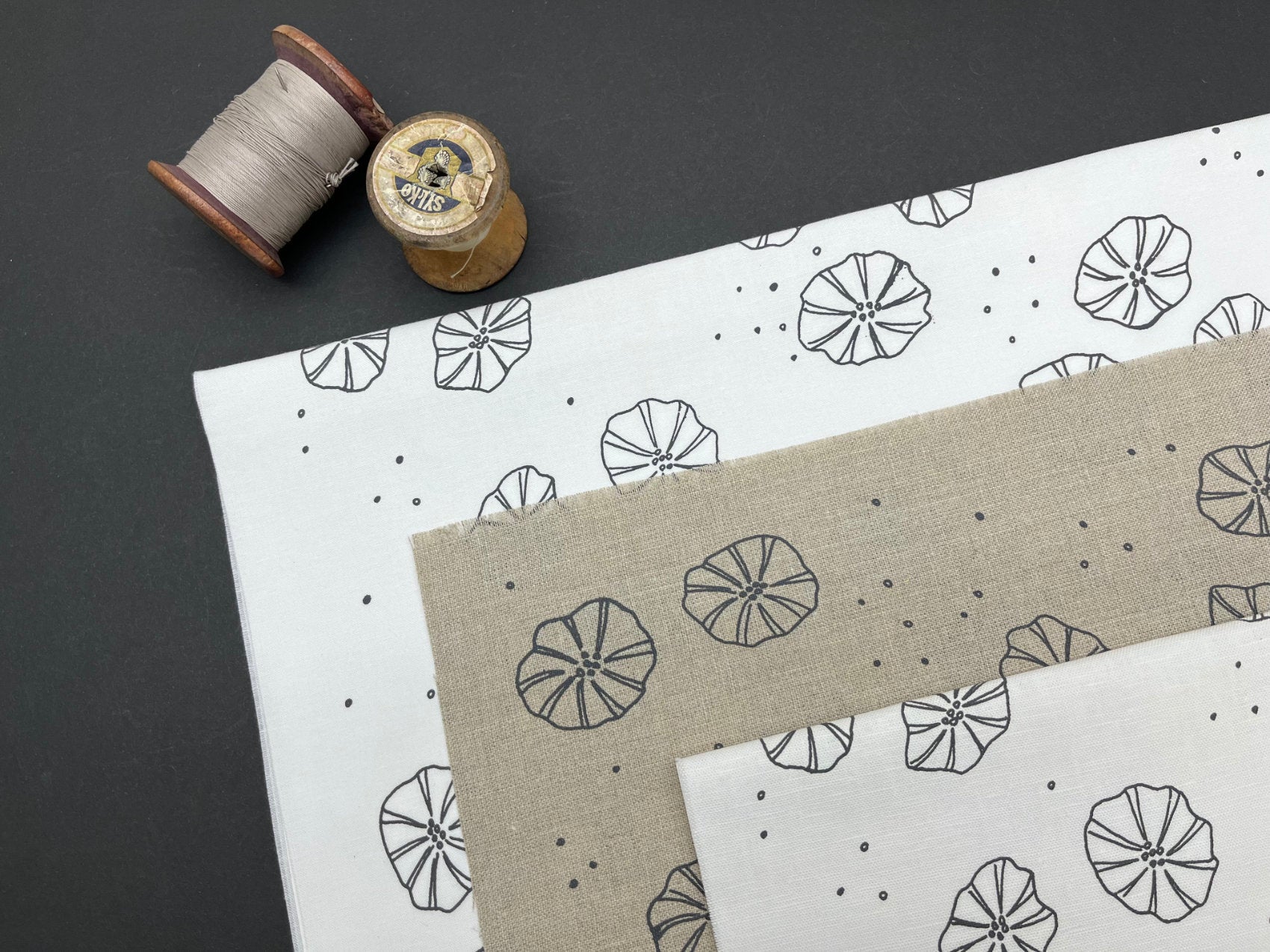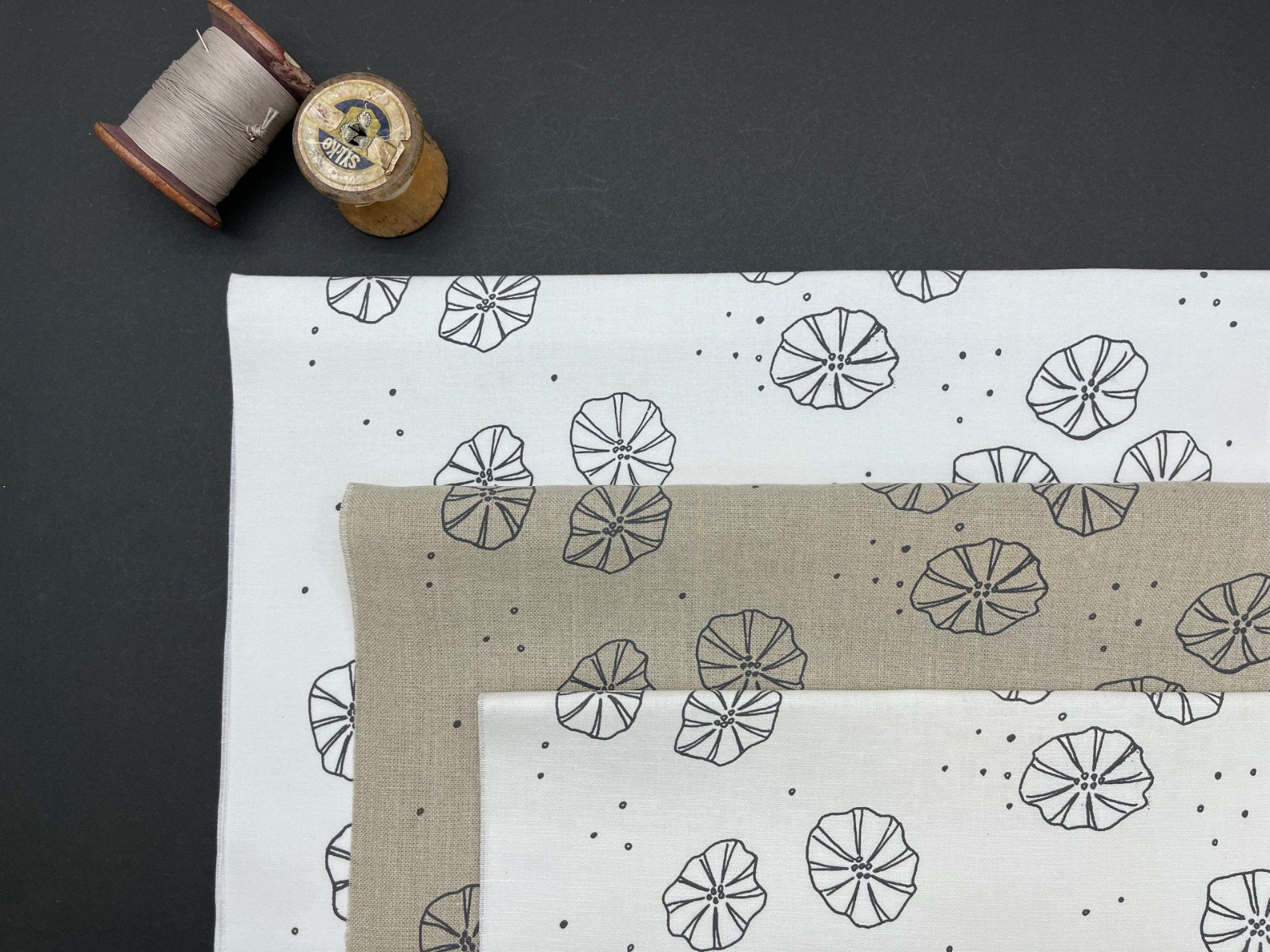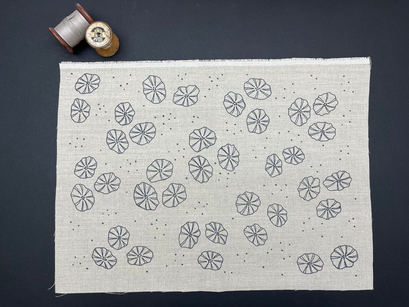 Hand screen printed cotton and linen fabric for embroidery, quilting and craft projects. These original fabrics have simple designs with a vintage feel to them, pick your favourite colour and print and plan your next project.