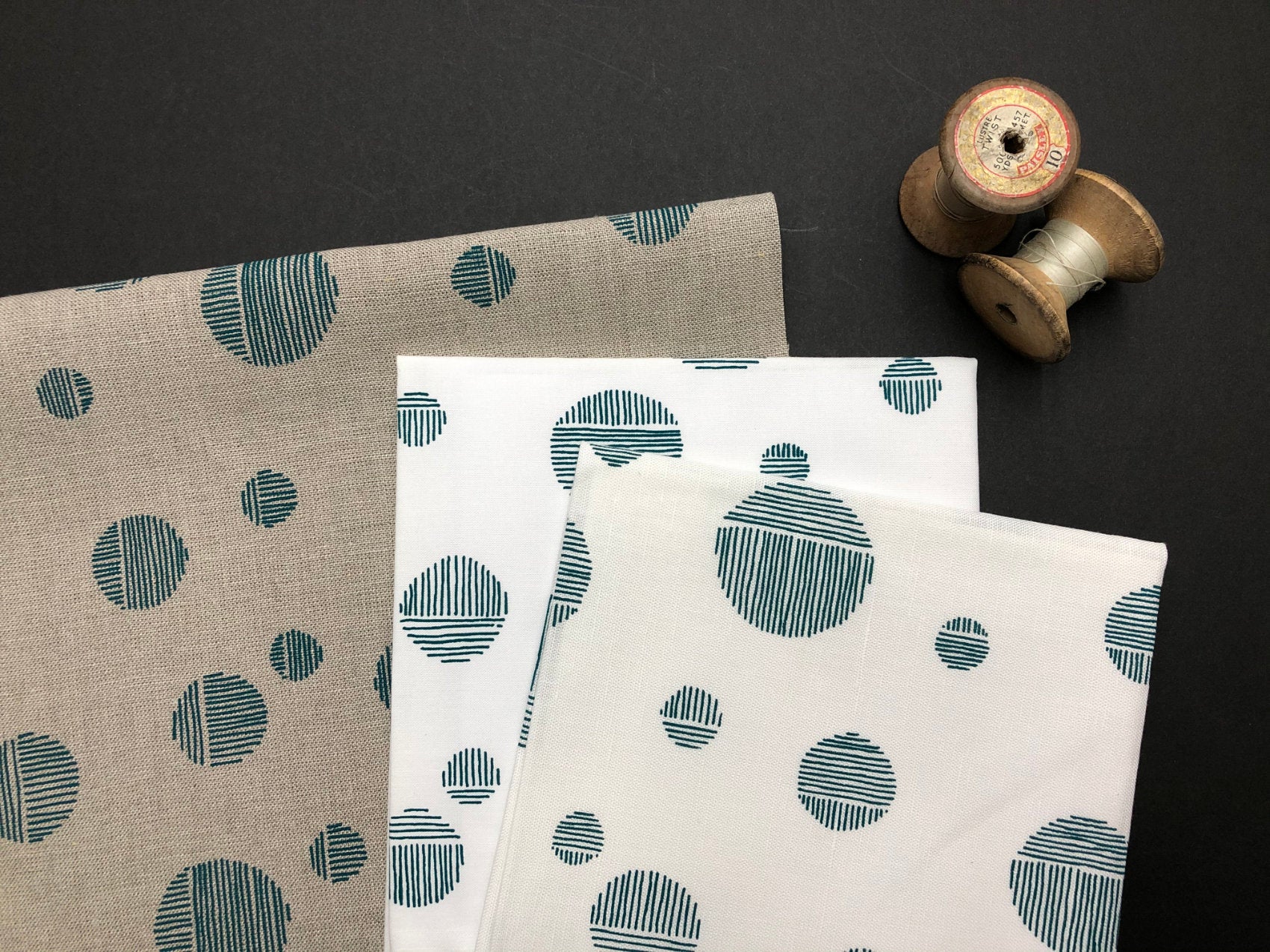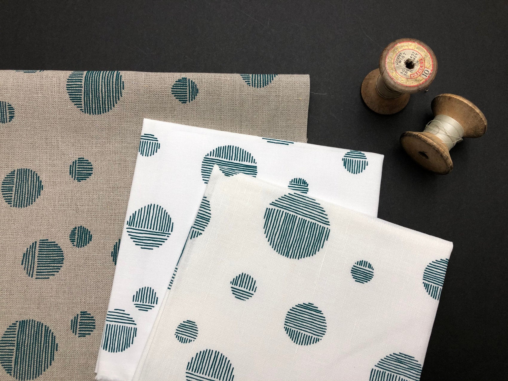 Moon - contemporary circles with a linear texture. Each hand drawn circle has it's own charm and this fresh design works beautifully in modern textile projects.