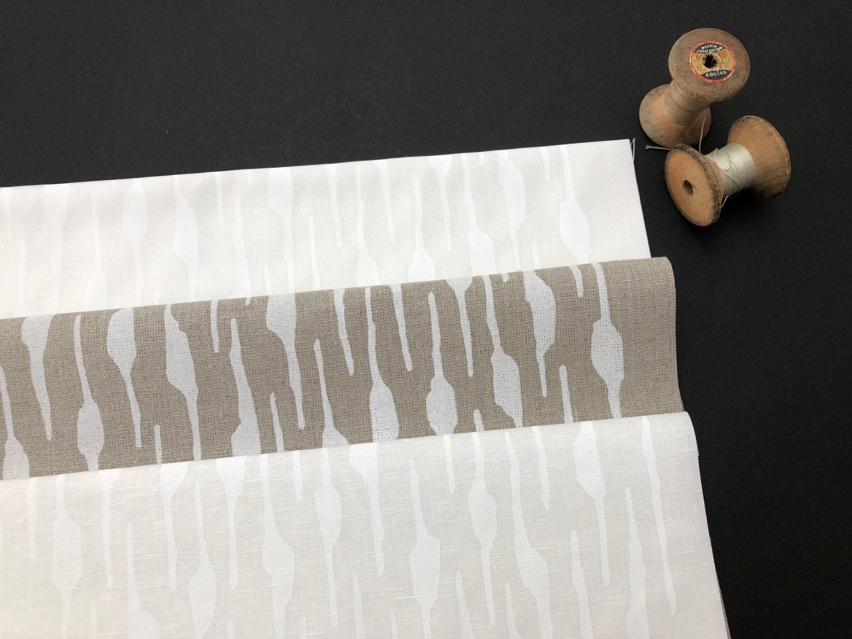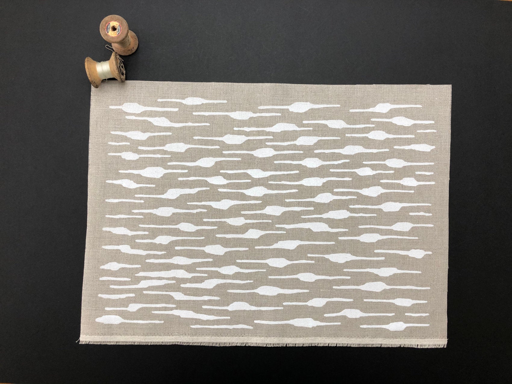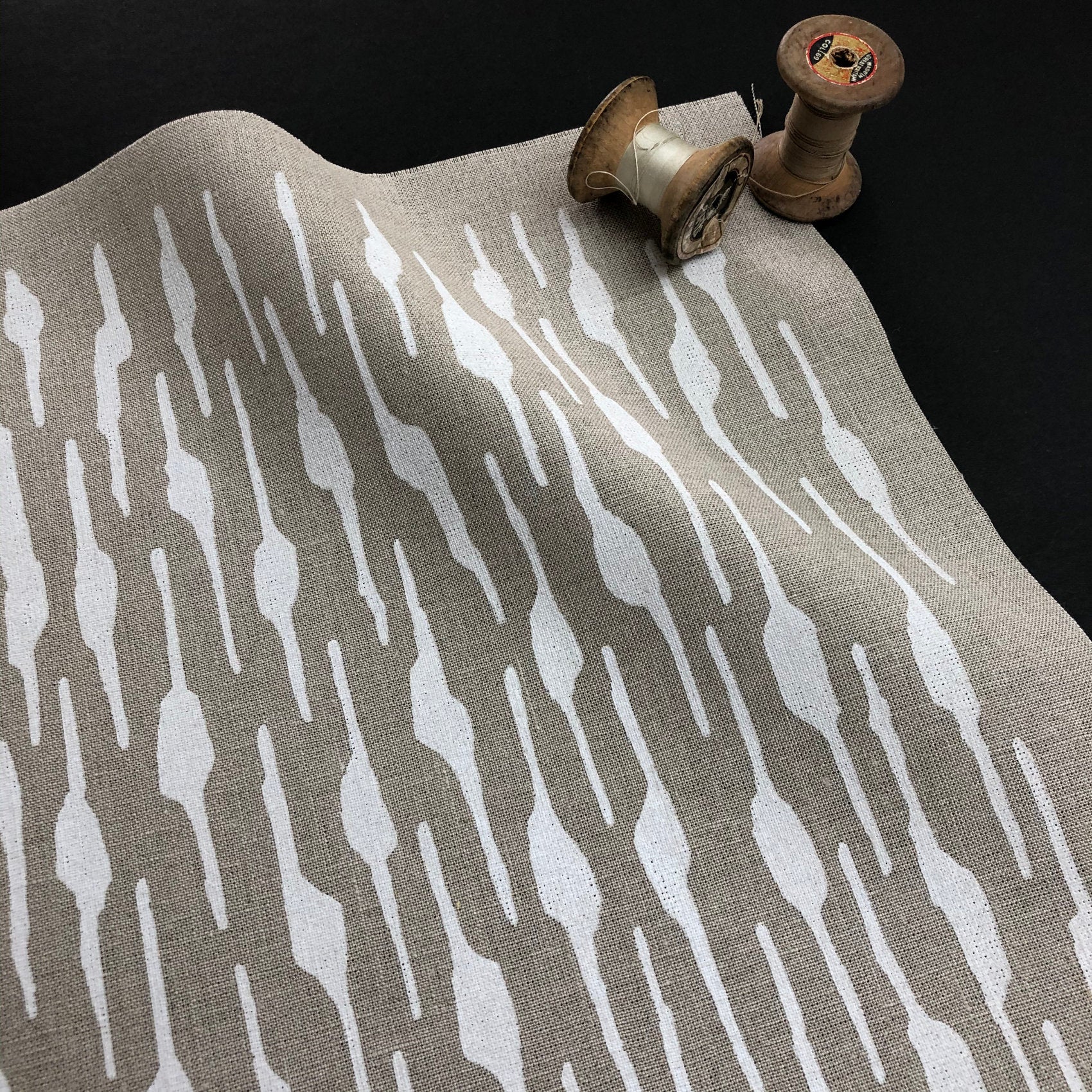 Graphic screen printed fabric ideal for embroidery, quilting and crafting, hand printed onto linen and cotton fabric to suit your projects.