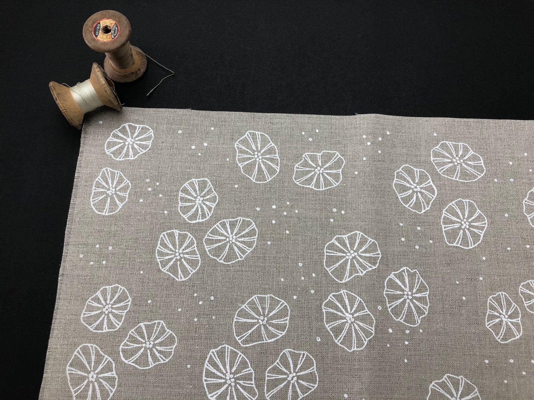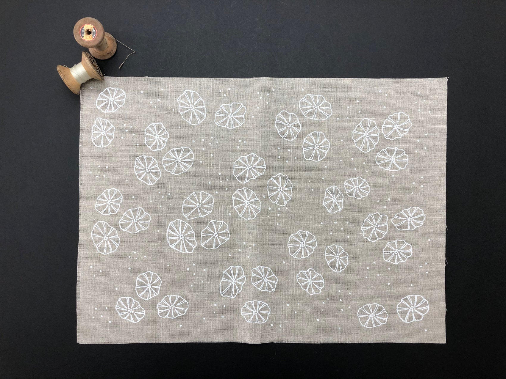 Hand screen printed cotton and linen fabric for embroidery, quilting and craft projects. These original fabrics have simple designs with a vintage feel to them, pick your favourite colour and print and plan your next project.