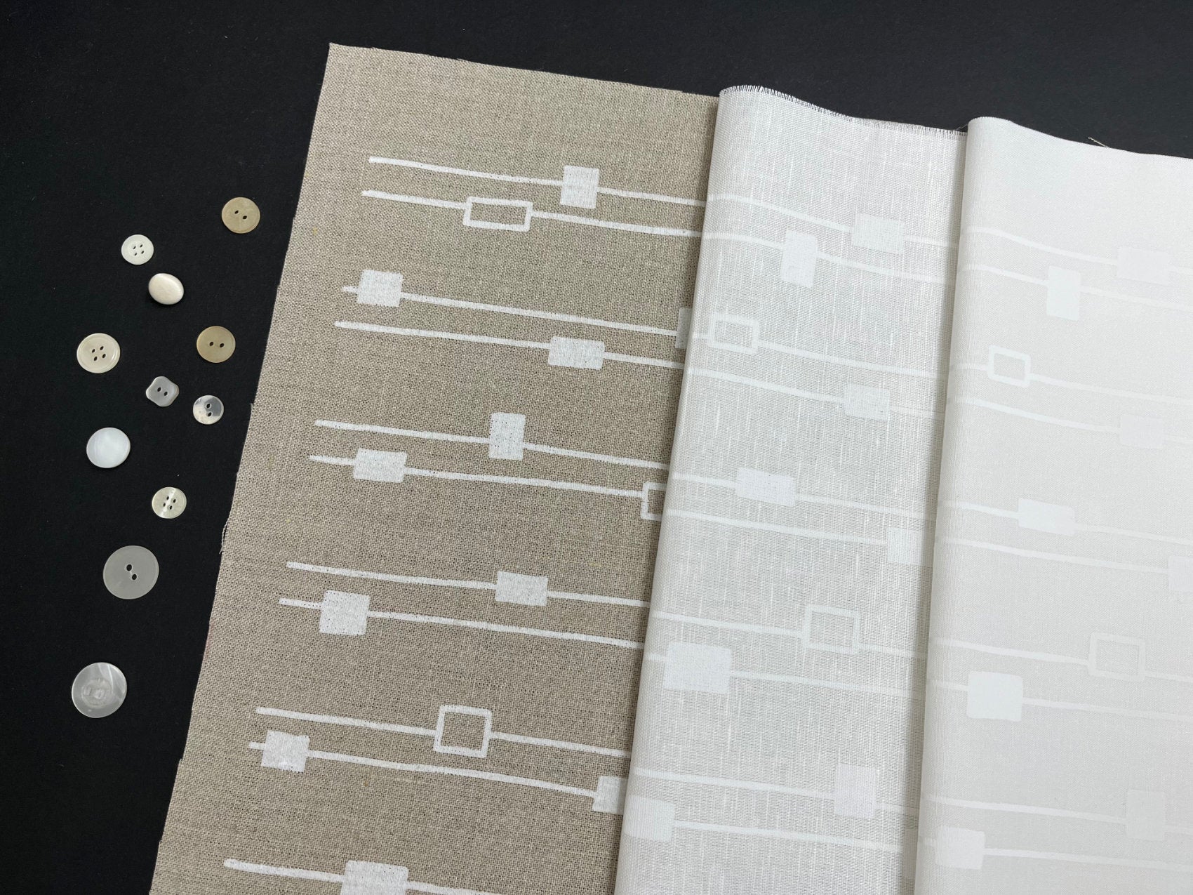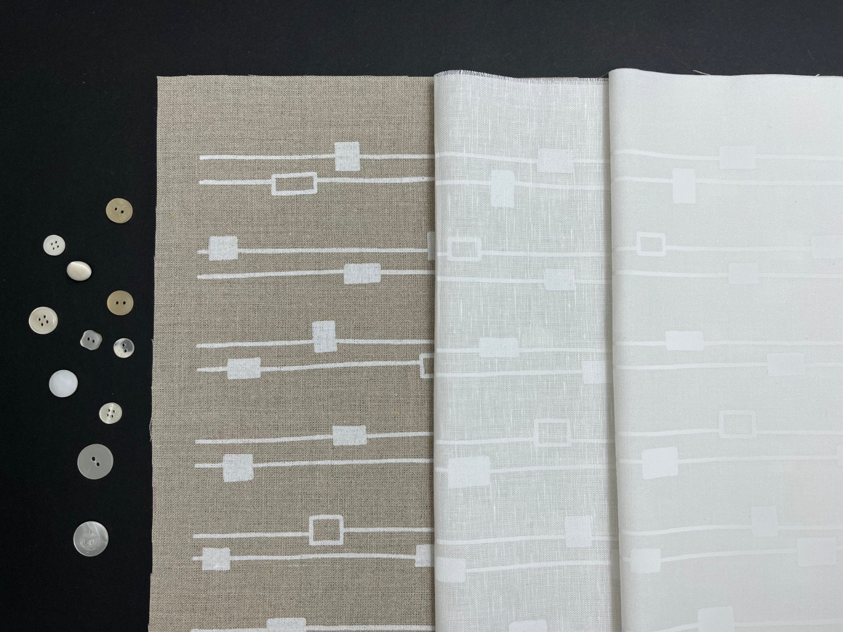 Tracks, printed in white is a versatile addition to your stash. The white on white is a subtle low volume fabric lending itself well to embroidery and quilting alike.
